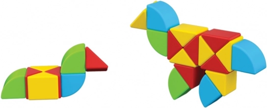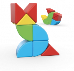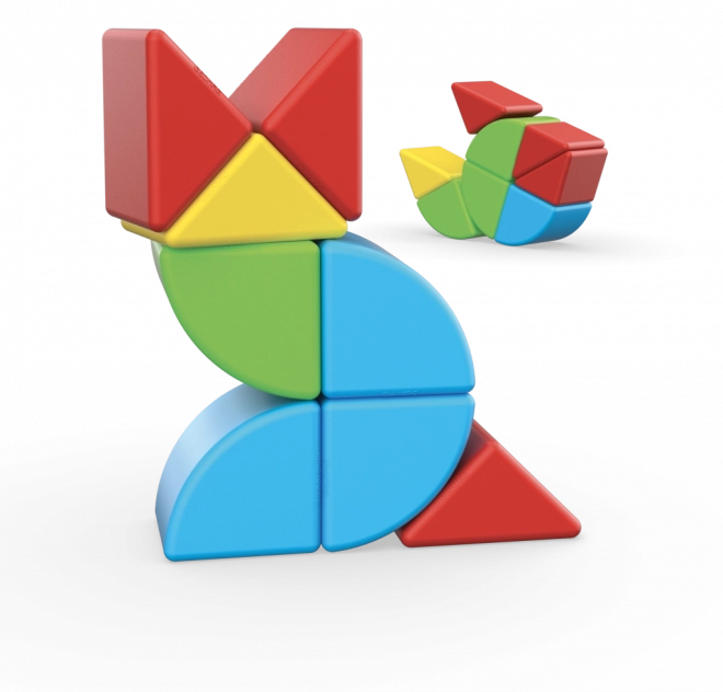Le jeu de construction magnétique comprend 16 demi-blocs et 8 secteurs en quatre couleurs. Combinez-les avec les autres formes de la gamme Magicube. Convient à partir de 1 an.