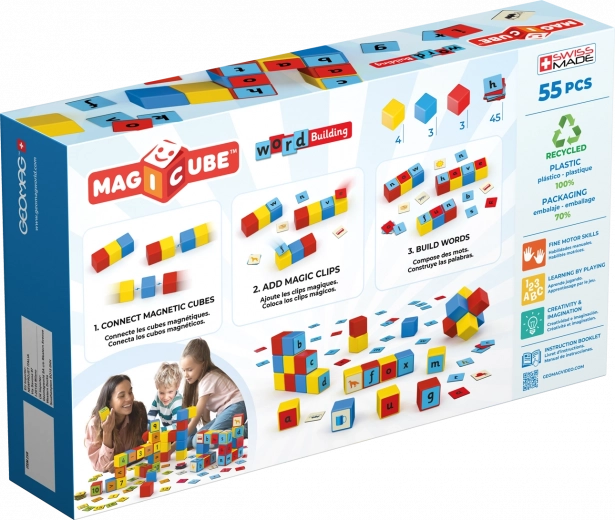 Geomag Magicube Words est une manière intelligente et ludique d’initier les enfants aux lettres et à leurs premiers mots. Les cubes magnétiques s’assemblent sur toutes les faces, rendant la construction intuitive et amusante. Les enfants peuvent créer des constructions 2D et 3D tout en entraînant leurs compétences linguistiques.
