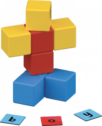 Le set comprend 10 cubes magnétiques en plastique 100 % recyclé et 45 clips recto-verso avec des lettres et des images. Les clips différencient par couleur les voyelles et les consonnes, ce qui facilite la lecture initiale et la composition de mots. Le jeu développe la créativité, la motricité fine, la pensée logique et nourrit la curiosité autour du magnétisme.