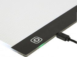 Grâce à sa structure ultra fine, la planche est facile à transporter et se glisse parfaitement dans un sac. L’alimentation via USB (5 V / 2 A) garantit une grande flexibilité – un ordinateur portable, un adaptateur ou une batterie externe suffit. La surface en acrylique est résistante et agréable au toucher, et le contrôle par un seul bouton est rapide et intuitif.