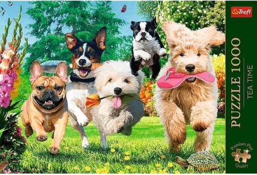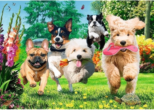 Des chiens joueurs dans un jardin en fleurs apportent énergie, émotion et une illustration détaillée qui ravira aussi bien les débutants que les puzzleurs expérimentés.