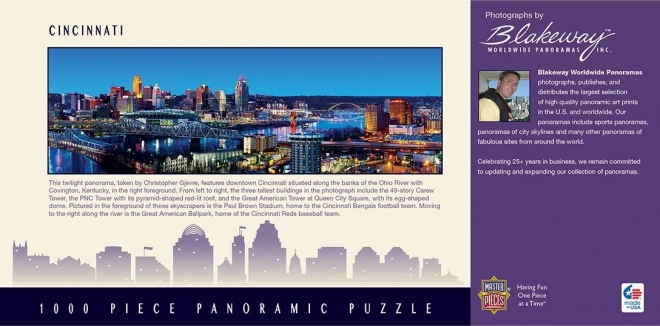 Plongez dans le panorama détaillé de la ville de Cincinnati, dans l’Ohio, et profitez d’un assemblage fluide grâce à des pièces de qualité qui tiennent fermement et composent une image agréable à l’œil. Le format panoramique est idéal pour les amateurs de paysages urbains, et la série Cityscapes séduit par la richesse de ses couleurs et la netteté de ses détails.