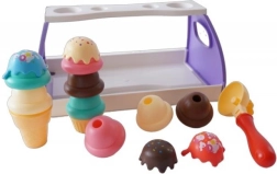 Avec cet amusant set de glace, les enfants créent facilement leur propre bar à glaces. Le plateau de service avec support maintient le cornet bien en place et, grâce à la cuillère, « servir » la glace devient un jeu d’enfant. Idéal pour le jeu de rôle et le développement de l’imagination.