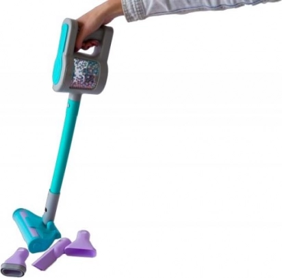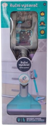 Aspirateur à main avec embouts interchangeables. L’aspirateur est à batterie et émet un bruit d’aspiration. Chaque ménagère va adorer cet aspirateur. Toujours à portée de main.