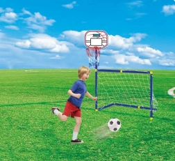 Cet ensemble sportif 2‑en‑1 pour enfants combine un but de football et un panier de basket, afin que les enfants puissent choisir à tout moment s’ils marquent des buts ou des paniers. Grâce à ses dimensions compactes (but 88 × 55 × 45 cm, panier 87 cm), il convient aussi bien à la chambre d’enfant qu’au jardin.