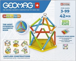 La gamme Supercolor Panels utilise du plastique 100 % recyclé pour les tiges, les panneaux et l’emballage. Vous obtenez ainsi un jouet de qualité, durable et sûr, qui soutient une approche écoresponsable. Des aimants puissants assurent des connexions stables et des constructions solides, parfaites pour un jeu enthousiaste.