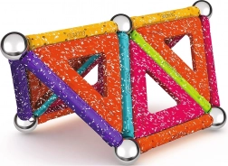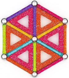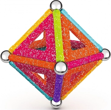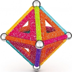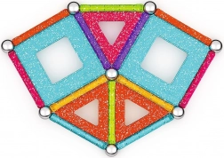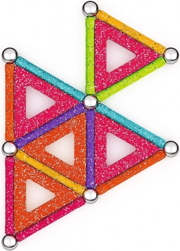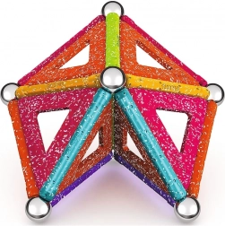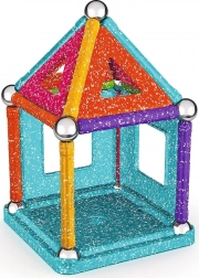 GEOMAG Glitter apporte la magie des aimants dans un éclat éblouissant. Grâce aux tiges colorées, aux billes en acier et aux panneaux, vous construirez facilement des maisons, des étoiles et des formes géométriques originales. Toutes les pièces en plastique (hors billes) ont une finition pailletée qui donne à chaque construction une apparence exceptionnelle.