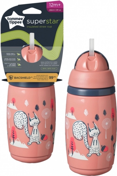 Gobelet thermique rose Tommee Tippee avec paille 266 ml