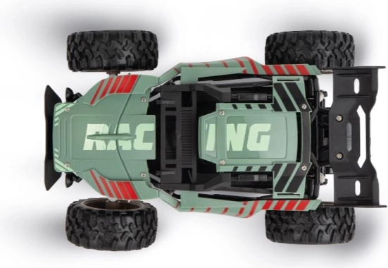 Voiture RC Mountain Racer en vert éclatant pour s’amuser en déplacement. Vitesse 12 km/h, technologie 2,4 GHz, idéale pour l’aventure.