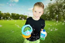 Dans la boîte, vous trouverez une bouteille pratique de 0,4 l de solution à bulles et un récipient à vis qui minimise le désordre. Grâce à son utilisation simple, même les plus petits s’en sortent facilement; l’alimentation est assurée par 3× piles AA (non incluses).
