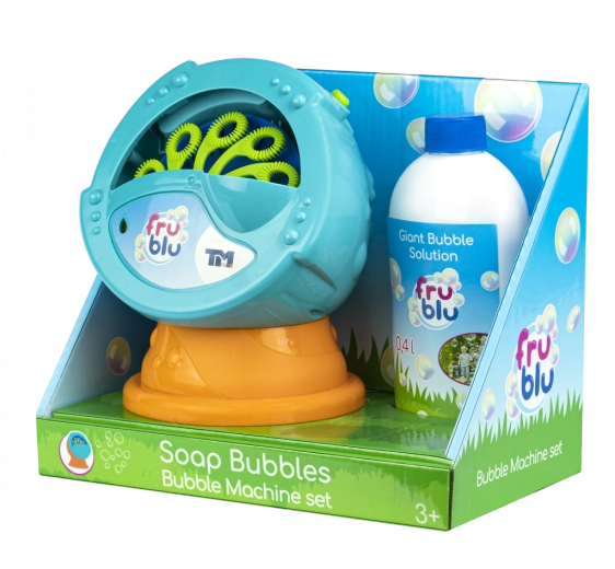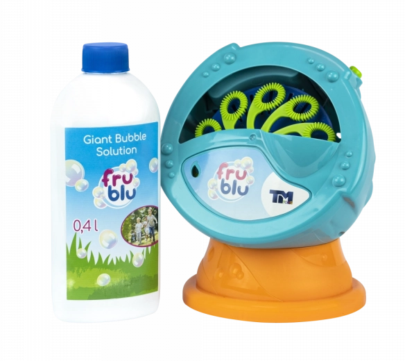 Lancez la fête avec la machine à bulles FRU BLU : une machine automatique à bulles qui crée en un instant un flux de bulles irisées. Inclut une solution de 0,4 l, un contrôle facile et fonctionne avec 3× AA (non incluses). Idéale en intérieur comme au jardin pour les enfants dès 3 ans.
