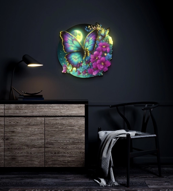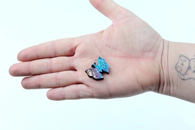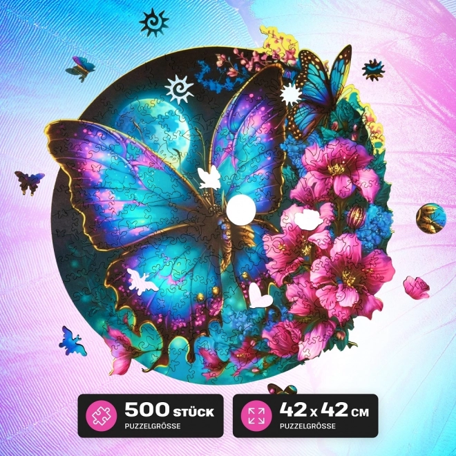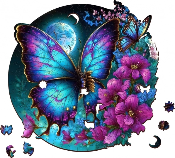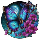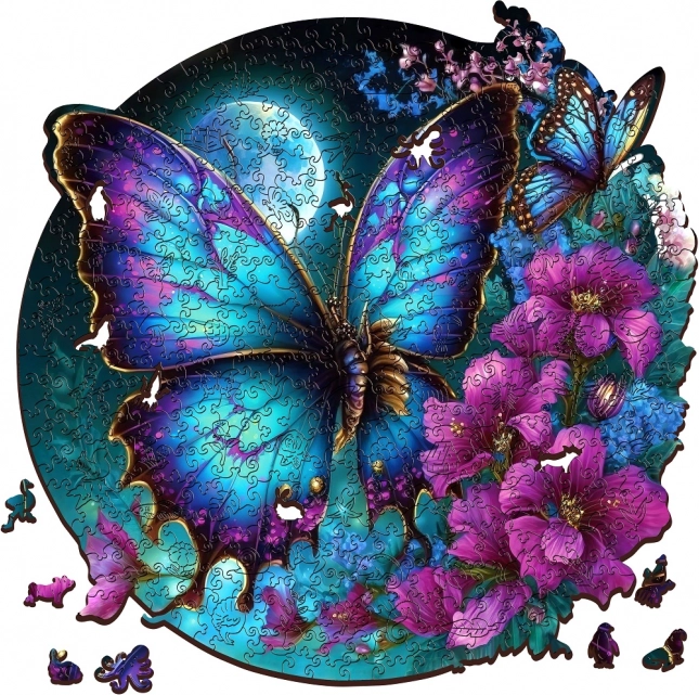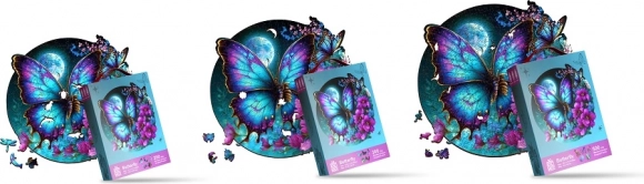 Ce puzzle rond en bois au motif saisissant de papillon bleu-violet offre des couleurs parfaitement nettes grâce à l’impression numérique UV et à un savoir-faire soigné. Chaque pièce est unique, douce au toucher et s’ajuste avec précision, garantissant un assemblage agréable et fluide. Avec un diamètre de 42 cm, le puzzle terminé devient une décoration murale originale.