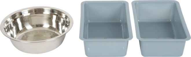 2 bacs amovibles, boutons rotatifs, orifices encastrés pour tuyau/ustensiles
