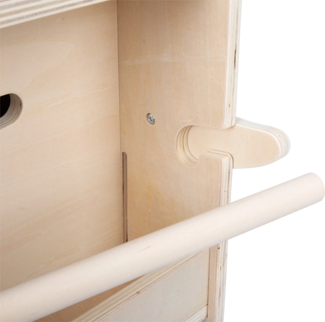 Entre les « défenses », une tige en bois coulissante permet de suspendre un rouleau de papier – les enfants ont toujours de quoi dessiner à portée de main tout en gardant l’ordre.