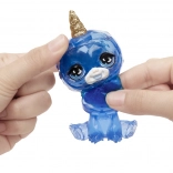 Une adorable créature bleue au cor scintillant peut être remplie de slime – un effet amusant qui stimule le jeu sensoriel.