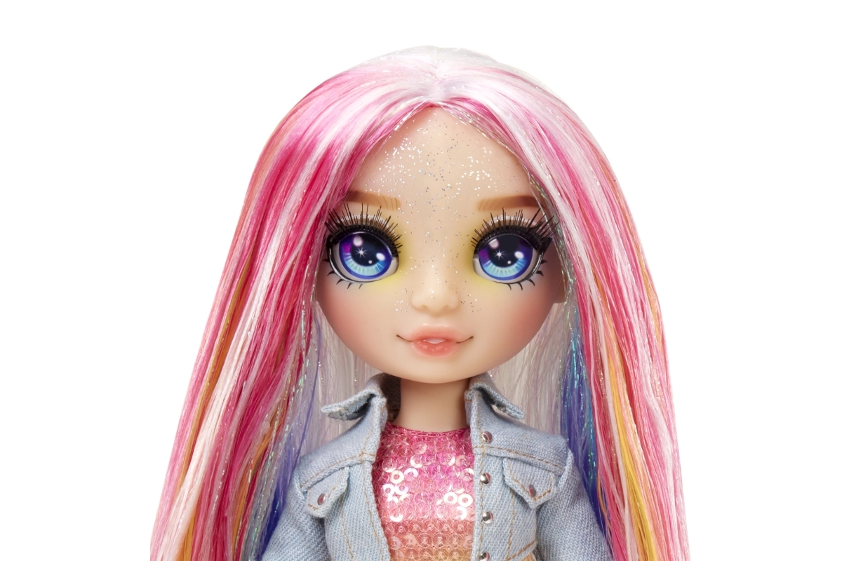 De longs cheveux multicolores, parfaits pour le coiffage et le stylisme. La robe pailletée avec une petite veste en denim confère à la poupée un effet « wow » pour la mode quotidienne comme pour la vitrine.