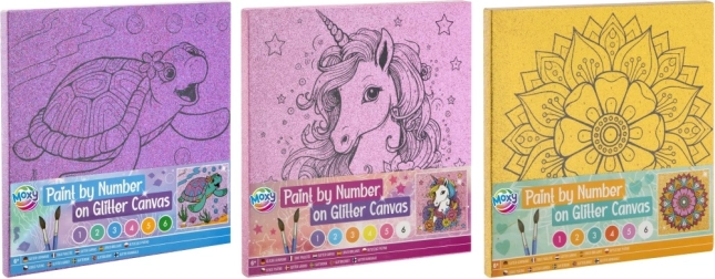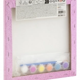 Ce kit comprend une toile scintillante avec une image pré-imprimée qui permet une peinture facile et amusante, même pour les débutants. L'ensemble comprend six aquarelles et deux pinceaux qui vous fourniront tous les outils nécessaires pour commencer.