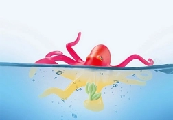 Au contact de l’eau chaude, la pieuvre prend des teintes jaunes – un effet ludique qui stimule la curiosité et le jeu interactif.