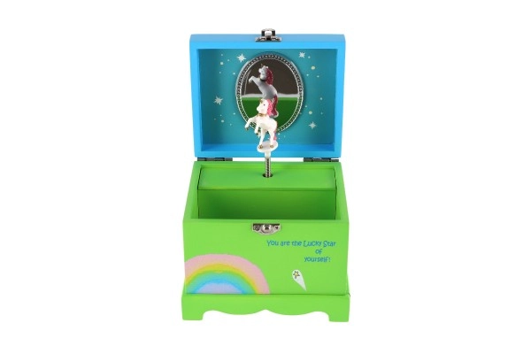 Après avoir remonté la clef, la figurine de licorne se met à tourner à l’intérieur et joue une douce mélodie – une expérience magique à chaque ouverture du couvercle.