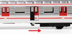 Le modèle est un jouet parfait pour le jeu quotidien et un cadeau attrayant dans une boîte de 19,5 × 7 × 6 cm. Une porte peut être ouverte au moyen d’un levier sur la face inférieure de la voiture, et les voitures peuvent être facilement raccordées pour former une rame plus longue et encore plus réaliste.
