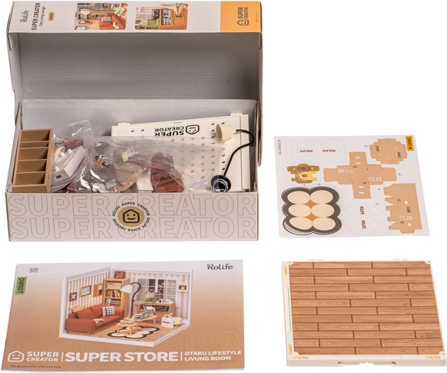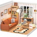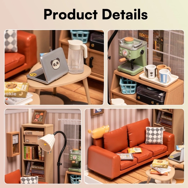 Cette maquette créative propose un intérieur réaliste avec canapé, bibliothèque, table basse et lampadaire. Une fois assemblée, elle devient une décoration élégante pour le bureau, le salon ou la chambre d’enfant. La lumière LED crée une atmosphère agréable et met en valeur les finitions soignées.