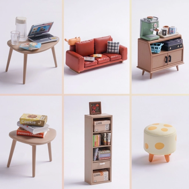 Un canapé sophistiqué, une bibliothèque, des tables et des accessoires créent une scène de salon fidèle, parfaite pour l’exposition et le plaisir des collectionneurs.
