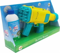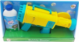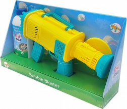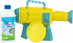 La boîte contient un blaster, une coupelle peu profonde et 0,4 l de solution à bulles de qualité. Il suffit de tremper et de lancer les bulles.