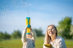 La tête à multiples buses crée un flux dense de petites bulles qui remplissent l’espace de joie en un instant – parfait pour le jardin et les fêtes d’enfants.