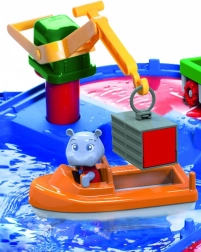 Centre de divertissement en 21 pièces avec la figurine de l’hippopotame Wilma et une grue pour le chargement des bateaux.