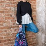 Motif abstrait saisissant dans des tons violets, bleus et roses qui donnera du style à votre tenue et garantira que le sac ne passe pas inaperçu.