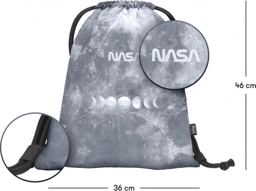 Sac de sport stylé avec motif NASA, dans un design lunaire gris, idéal pour les chaussures et les petits objets de loisirs. Fabriqué en matériau résistant et lavable, il dispose de cordons de serrage robustes pour la fermeture et un port confortable sur le dos. Pratique, léger et facile à entretenir pour une utilisation quotidienne.