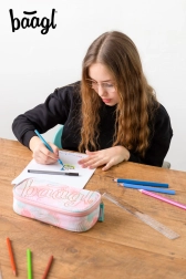 Vous cherchez une trousse résistante et bien organisée qui supporte le rythme scolaire quotidien ? BAAGL Sunset allie design moderne et praticité. Grâce à la cloison intérieure rabattable, vos fournitures sont toujours ordonnées et à portée de main, tandis que la poche intérieure zippée garde en sécurité les petits objets.