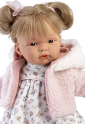 La poupée réaliste Llorens Joelle de 38 cm, qui parle et pleure, possède un corps souple en tissu et une tête et des membres en vinyle. Grâce à la tétine magnétique, vous apaisez facilement le bébé qui pleure. Fabriquée à la main en Espagne, livrée dans une boîte cadeau – un excellent cadeau pour les enfants dès 3 ans.