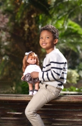 Le torse en coton doux est agréable à câliner, tandis que les membres et la tête en vinyle assurent durabilité et entretien facile.