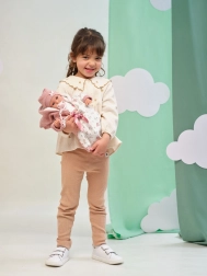 Des traits du visage précis, des ombrages délicats et de beaux cils donnent à la poupée une expression vivante. Chaque pièce est soigneusement fabriquée en Espagne.