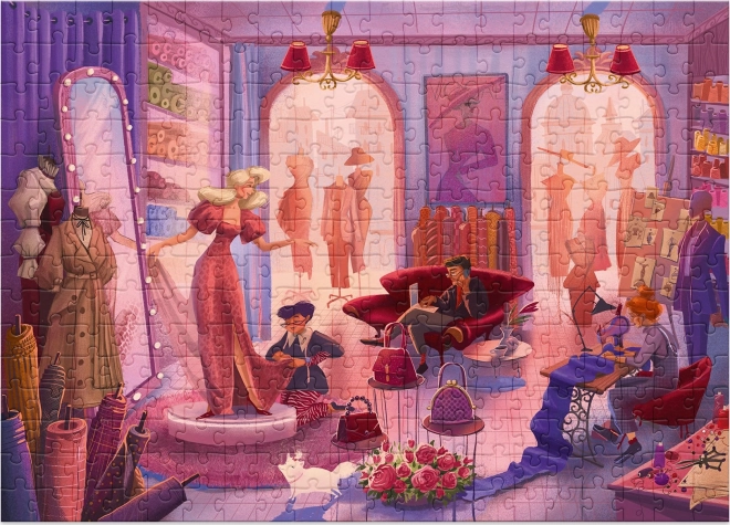 DODO Puzzle : Studio de mode vous emmène dans l’univers fascinant d’un atelier où naissent de magnifiques robes. Ce puzzle offre non seulement du divertissement, mais développe aussi la motricité fine, la concentration et la logique. Chacune des 300 pièces est découpée avec précision dans un carton résistant, garantissant un assemblage aisé et une longue durée de vie.