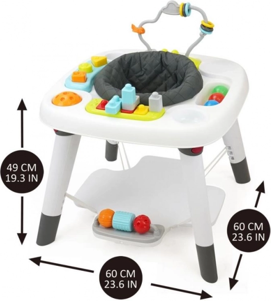 La table de jeu interactive pour enfants 3 en 1 est bien plus qu'un simple jouet. Dans la première phase, l'enfant peut explorer le monde autour de lui depuis le confort de son siège avec des jouets facilement accessibles. La deuxième phase apporte du divertissement tout en apprenant à marcher et à interagir avec des jouets interactifs et colorés disposés autour de la table. La troisième et dernière phase transforme la table en un meuble fonctionnel qui peut servir pour jouer, manger ou d'autres activités créatives.