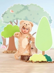 La capuche avec oreilles et visage d’ourson, ainsi qu’une petite broderie sur la poitrine, donnent un look féerique au costume.