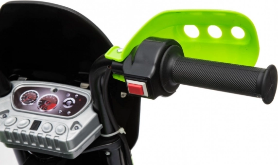 Cette moto électrique pour enfants au style cross est idéale pour les premières sorties sur deux roues. Le contrôle aisé grâce à l’accélérateur intégré à la poignée et au mode avant aide à gagner en confiance, tandis que les roulettes stabilisatrices amovibles assurent la stabilité sur tout type de surface. Les feux LED avant et le panneau avec sons et mélodies ajoutent une dose supplémentaire de fun et de réalisme.