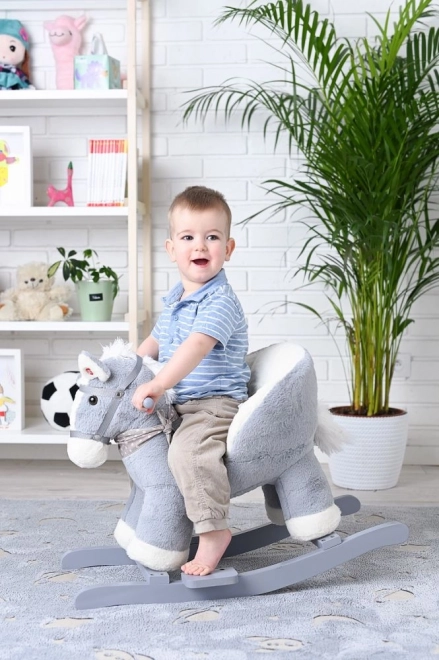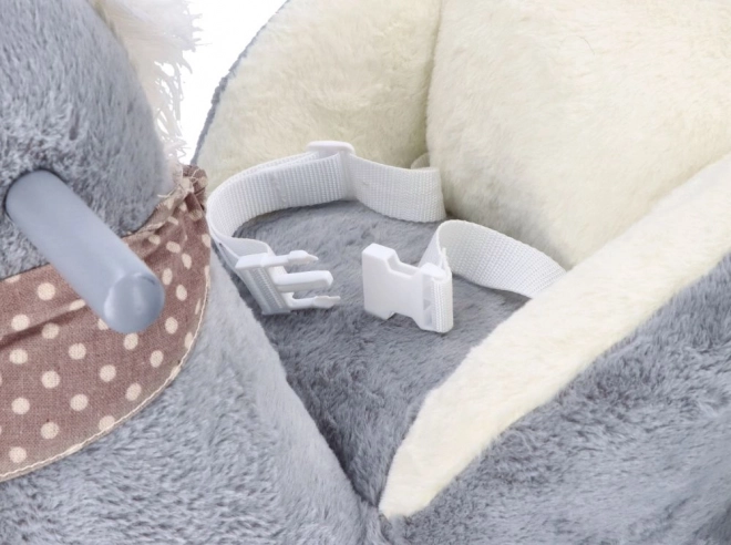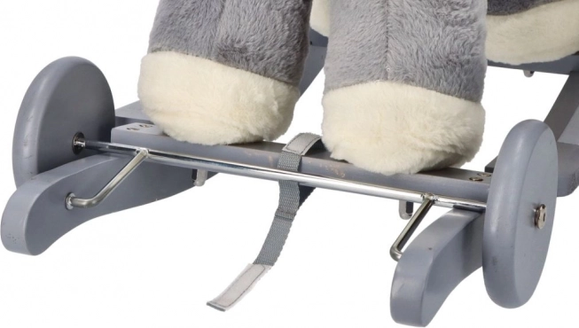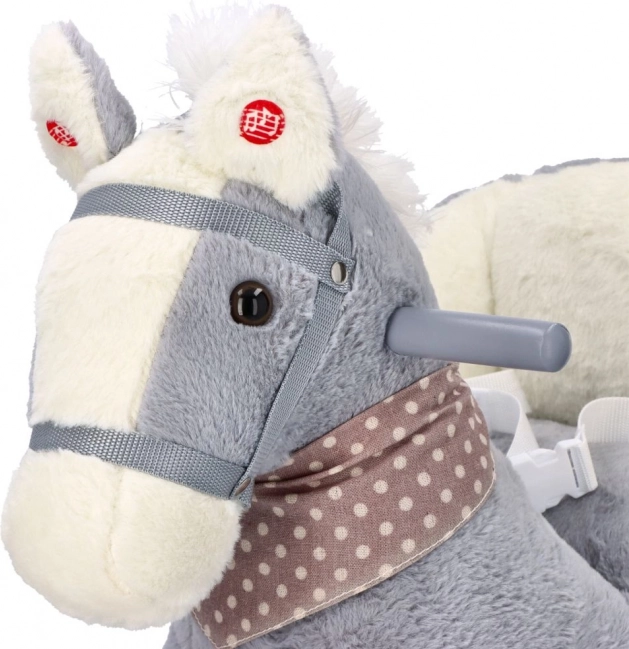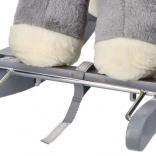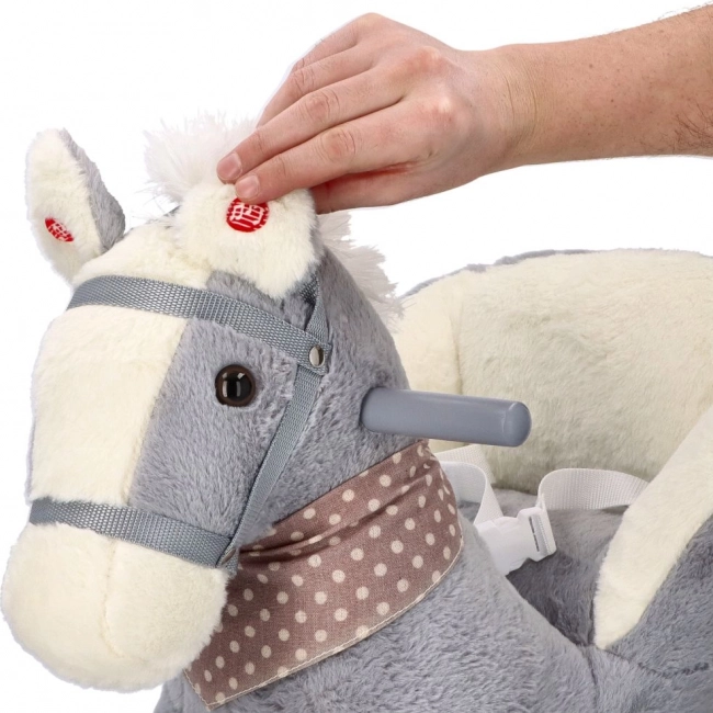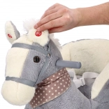 Le cheval en peluche gris avec siège confortable est un excellent choix pour les enfants qui aiment se balancer et se promener. Les patins en bois aux bords arrondis et les poignées assurent la stabilité, tandis que le rembourrage doux offre du confort même lors de jeux prolongés. Un compartiment à piles intégré (sous le ventre du cheval) permet d’activer des effets sonores ou lumineux selon le modèle.
