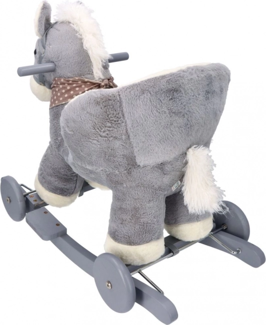 - Cheval à bascule en peluche avec siège et roulettes
