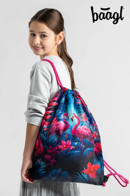 Le sac stylé à motif de flamants roses de Baagl est idéal pour les chaussures et les petits objets lors des activités de loisirs. Il offre un matériau solide et lavable, un mousqueton pratique pour l’accrocher au cartable et une fermeture par cordons robustes qui permet un port confortable sur le dos.