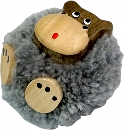 Le corps de l’hippopotame est un pompon en coton moelleux de couleur grise neutre, agréable au toucher et apportant une touche ludique à la décoration.