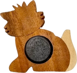 Adorable magnet en bois en forme de chat qui égaye tout réfrigérateur ou tableau magnétique. Fabriqué à la main avec jusqu’à cinq essences de bois naturel, sans teinture chimique – les couleurs sont naturelles. Parfait comme décoration ou petit cadeau pour les amoureux des animaux.