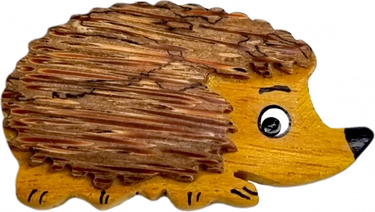 Adorable magnète en bois en forme de hérisson qui égaye n’importe quel réfrigérateur ou tableau magnétique. Faite à la main à partir de jusqu’à cinq essences de bois naturel et rehaussée de délicates touches de peinture. Grâce à un travail soigné et aux nuances naturelles, chaque pièce est unique. Idéale comme élément décoratif et petit cadeau attentionné pour les amoureux de la nature.