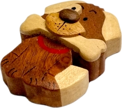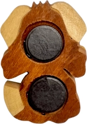 Ce grand magnet en bois représentant un chien avec un os allie savoir‑faire artisanal et matériaux naturels. Chaque pièce est soigneusement assemblée à partir de bois de différentes couleurs et seulement retouchée à la main – sans teinture couvrante, afin de mettre en valeur la veine naturelle du bois.