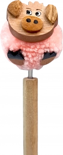 Un pompon rose tout doux avec une petite tête de cochon en bois donne au stylo un look unique et ravit les petits comme les grands amoureux des animaux.