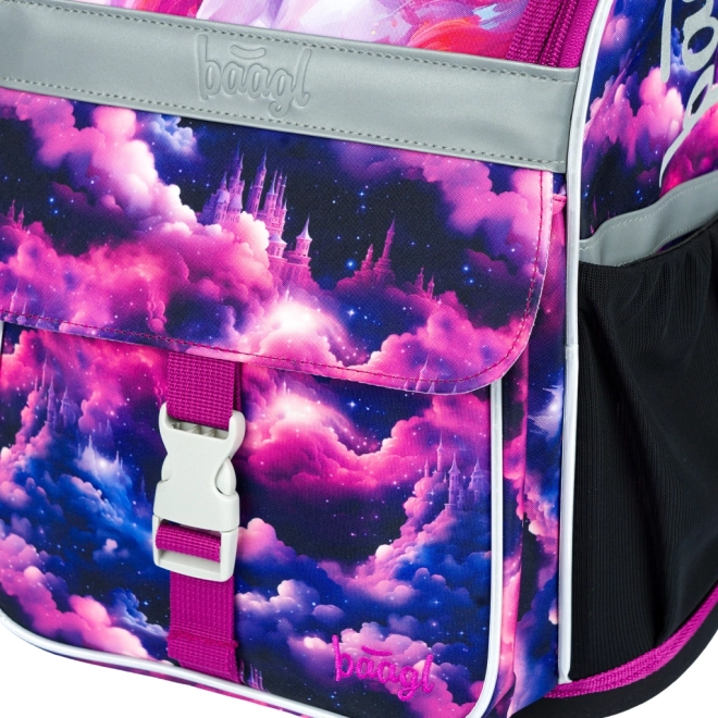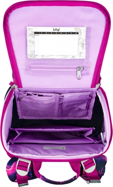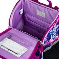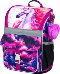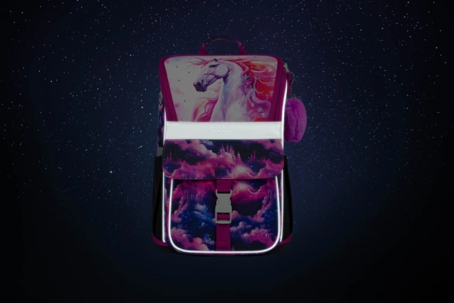 Le motif Licorne Royaume dans des tons rose et violet va enchanter les enfants. Les éléments réfléchissants augmentent la sécurité et la structure rigide conserve sa forme tout au long de la journée scolaire.