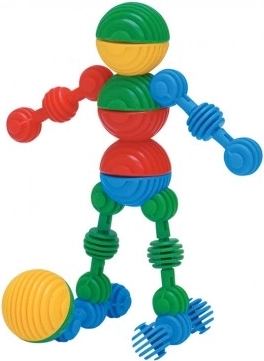 Des pièces interactives en forme de petits personnages colorés permettent aux enfants de créer différentes figurines et formes.