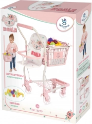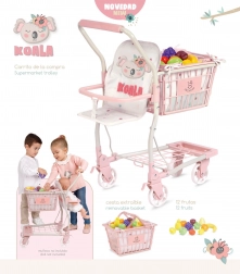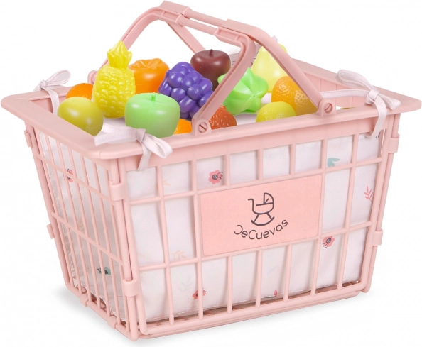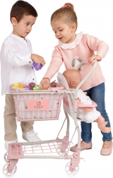 Ce chariot de courses rose pour enfants est idéal pour jouer à la marchande et développe l’imagination, les compétences sociales et la motricité fine. Il combine un chariot roulant spacieux avec siège pour poupée et un panier à main amovible avec bordure en tissu. Inclus : 12 fruits colorés pour un jeu réaliste.
